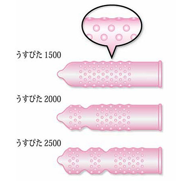 その日の気分で楽しめる!ジャパンメディカルのロングセラーコンドーム「うすぴた」シリーズ3種パック(各12個入×3箱)。超うす型ストレートの1500、カリ下一段絞りの2000、特殊二段絞りの2500、3種すべて三次元のツブ突起付き。脱落防止加工も施されたジャストフィットな使い心地の天然ゴム100%コンドームです。