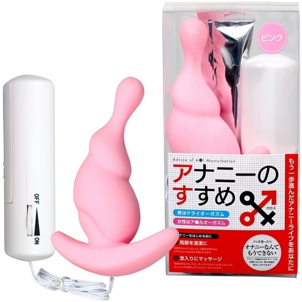 大好評の「アナニーのすすめ」が男女兼用になって登場!電動アナルグッズ「アナニーのすすめX(クロス)ピンク」。●本体挿入長8.5cm、最大径3.0cm●若干細め仕様のピンクカラー●ストッパー兼グリップ付き●無段階強弱の振動機能を搭載●簡単ダイヤル式コントローラー●単四電池×3本付属(動作確認用)●パウチローション12mlもセット。ドライオーガズムの世界へようこそ!ブラックタイプ(v01359)に比べて若干細めに仕上げたピンクタイプは、アナニー初心者の方にお勧めなサイズ。男性女性問わず使える凸凹フォルムのアナルバイブで快感のアナニーライフをご提供します。