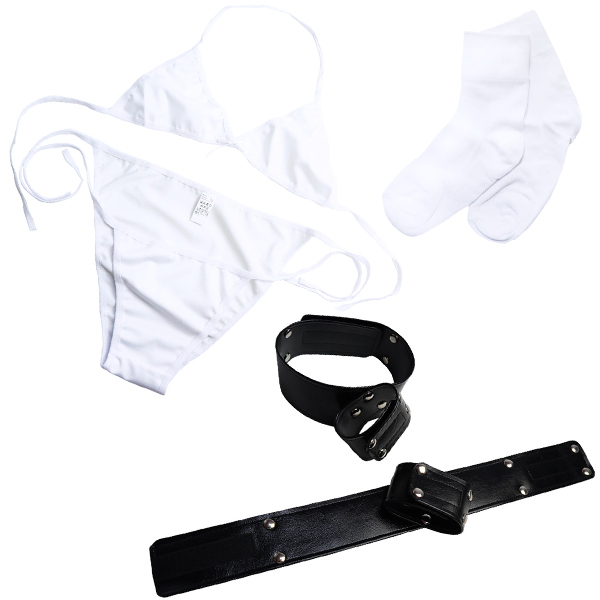HOME> SMグッズ・拘束具 > 枷・他(手足首・全身) > ggシリーズ 「手と太もも」下着付きSMグッズ 〜ブラ・パンツ・ソックス付き〜