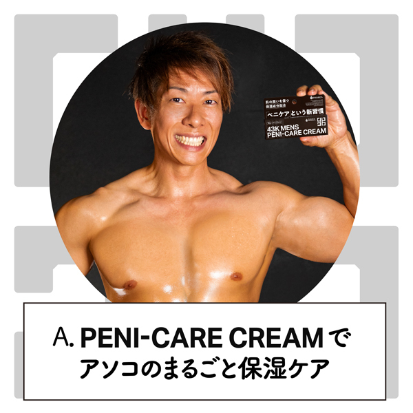 プレイ後のかさつき肌に◎AV男爵しみけん氏がプロデュースする「43K」から、肌のかさつきや乾燥を保湿する男性のためのぺニケアクリームが新登場!ヒアルロン酸Naやアルギニン、フユムシナツクサタケエキスなど保湿成分を配合。AV男優しみけん氏が長年の悩みを基に開発したクリームで、「ぺニケア」新習慣を始めよう!化粧品登録済