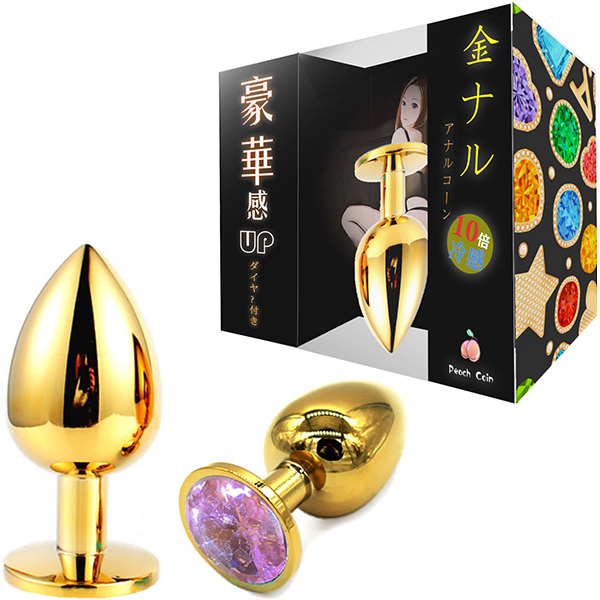 金色のプラグにキラキラとしたゴージャスな輝き!メタルの重量感・冷感がアナルを刺激し見た目も華やか。サイズもS・M・Lの3サイズあるため、お好みのサイズとカラーでお楽しみください。Sサイズ、ピンク
