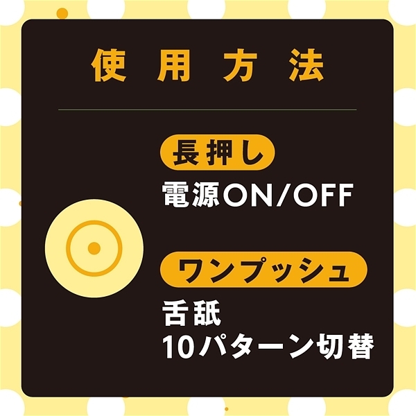 「はじめて」の人に選んでほしい。コンパクトボディでもしっかりイケる、舌舐め10パターン。手が疲れない軽量設計50g。ボタン一つで簡単操作。USB充電ケーブル付属。生活防水IPX5。●カラー:ピンク
