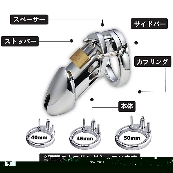 BDSMの代表的な道具で支配と服従の快楽を!シンプルなデザインのため簡単に装着できます。3つのサイズのリングがありますのでお好きなサイズで楽しめます。先端にスリットが入っているので普段通りに生活することが出来ます。合金製のため、お湯やアルコールで安全に洗い落とせます。●6000L