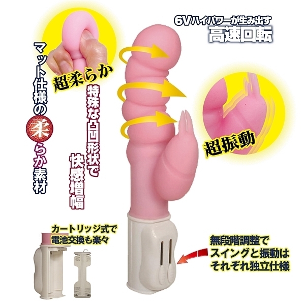 復活!!くねりん棒シリーズからなんと、やわらか素材のバイブが登場!!特殊な凹凸形状で見た目に豪快なシルエットで快感増幅。弾力のある超やわらか素材でフィット感間違いなし。6Vリモコンでハイパワーが生み出す高速回転、まるでバイブレーションが効いているようなスイング。さらに、子機バイブは高性能マイクロバイブで触手突起も刺激的な振動!電池を入れればすぐに使える楽々リモコンBOX、しかもカートリッジ式。無段階調整スイッチでお好みの速度でお楽しみいただけます。単四電池4本仕様(アルカリ電池推奨)静音タイプ。