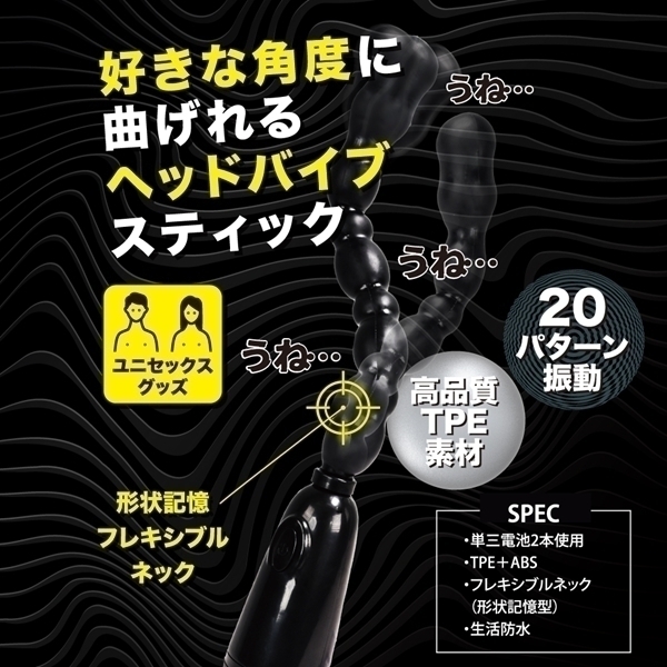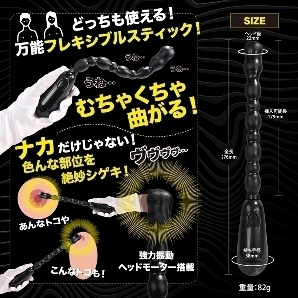 形状記憶機能を持ったユニークなバイブスティックです♪フレキシブルな設計により、お好みの形状に調整して使えるため、使いやすさと自由度が高いのが特徴!ユニセックス仕様で、さまざまなシーンで活用できる便利なアイテムです♪振動パターンは20種類あり、多彩なバリエーションを楽しむことができます!高品質エラストマー素材を採用し、使うたびに快適な使用感を提供♪ストレス臭カット仕様で、清潔感を保ちながら安心して使用できます♪どんな場面でも頼れる、しっかりした振動を実現するアクションスティックです!