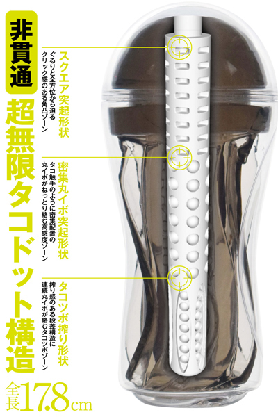 透き通るその姿は、まるでクリスタルのよう。見た目がとっても美しいオナカップ「オナクリスタル」!キラキラと光るような透明感をもつ繰り返し使えるカップ入りオナホールです。取り扱いやすいプラカップケースにぷりぷり弾力の肉感インナーホール、バキューム感も楽しめる非貫通式で快感ギミックが詰まった内部造形、目で見て刺激が分かる透明カラーと見た目以上に使い心地もマーベラス。カップからのホールは着脱可能なのでお掃除もバッチリです。カップに着けたままでムギュッと肉感に包まれるハードなプレイを。カップから取り外ししてトロンと開放感たっぷりなゆるゆるプレイを。カップ着脱で異なるプレイスタイルをお楽しみいただけます。「スモークカラー」は、ねっとりと纏わりつく無限オクトパス構造。ぐるりと全方位から迫る挿入ゾーンから、丸イボがねっとり絡むオクトパスゾーンに、蛸壺のような搾りフィニッシュゾーン、とオクトパスのようなアメイジングな快感をご体験ください!