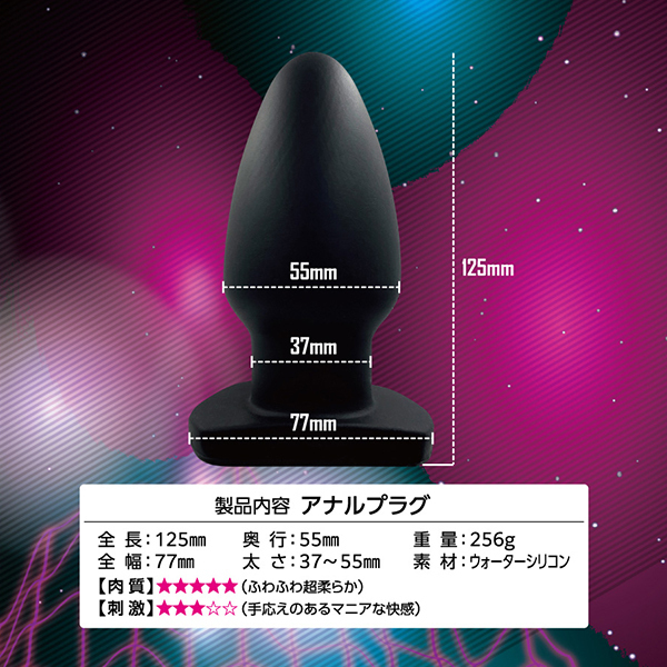 標準的なバレット形状のアナルプラグがウォーターシリコン素材となってさらに楽しめるようになりました!こちらの「エイナスストッパー WSウォーターシリコン (03)」はソフトで滑らかな挿入感が楽しめるスタンダードな使用感が特徴です。アナルの魅力を満足させる美しいボディラインにシリコンを超える進化素材!超しっとりでなめらか、快感度を追求したマテリアルが新たな快感のステージへと誘ってくれます。生々しい生体的な肉感弾力に人体や環境にも優しい安心材料♪サイズ的には太さ3.7〜5.5センチのストッパーということで、少し太めのレギュラーサイズのマニアックな快感が味わえます。底面部分は平らになっているので挿入時の行動を制限しません。拡張や圧迫などのマニアでアブノーマルなプレイを存分にお楽しみ下さい♪